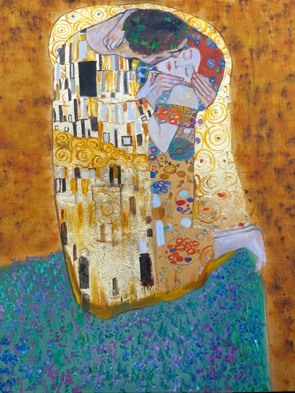 За счет такого разделения картины на этапы мы сможем шаг за шагом воссоздать шедевр Густава Климта "Поцелуй" и научимся писать сложные многослойные картины, разделяя их на части.