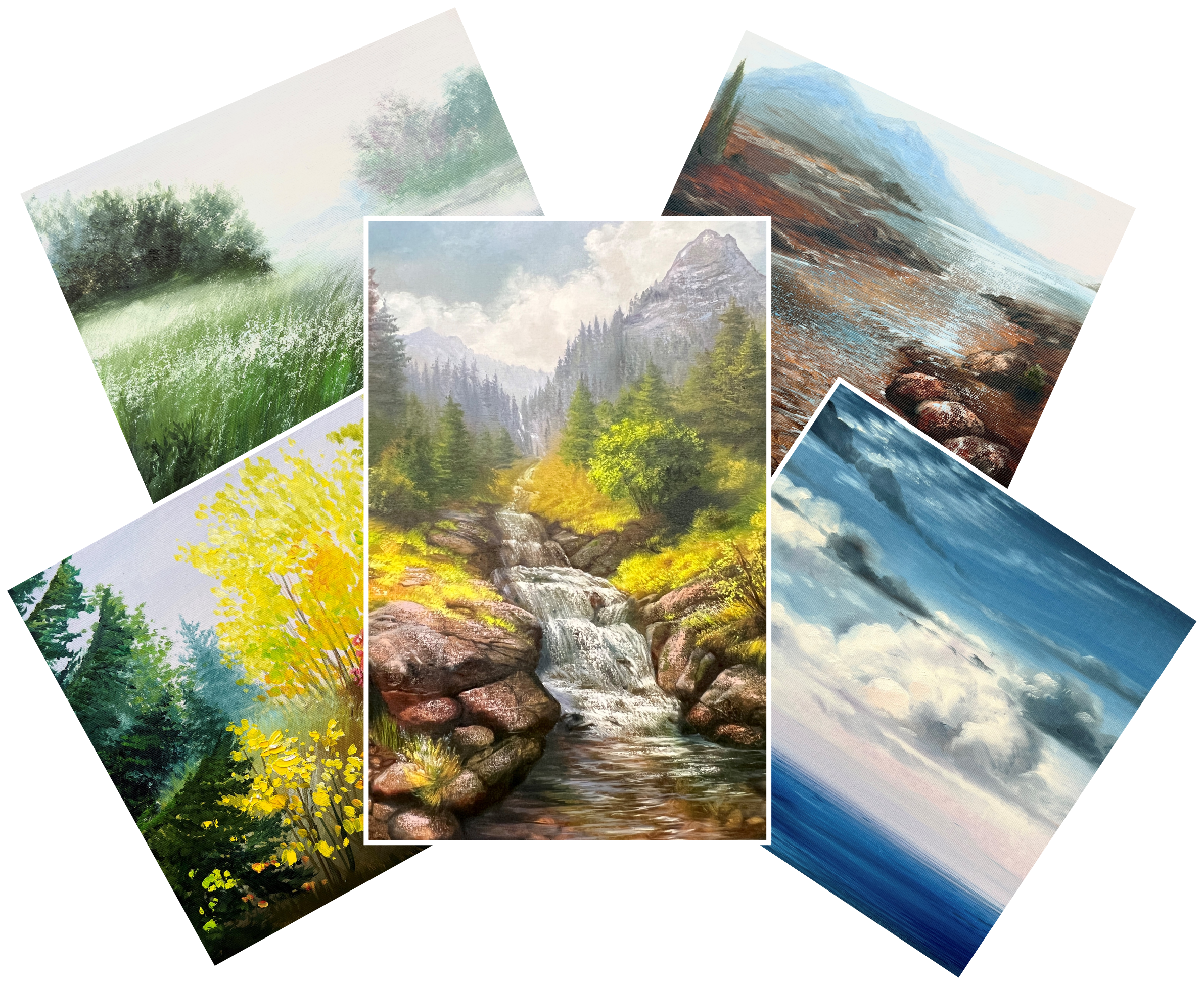 - Научитесь создавать специальные эффекты в пейзаже кистью и мастихином для придания реалистичности картинам (как создать объем камням, заставить листья шевелиться, а воду течь в нужном направлении)