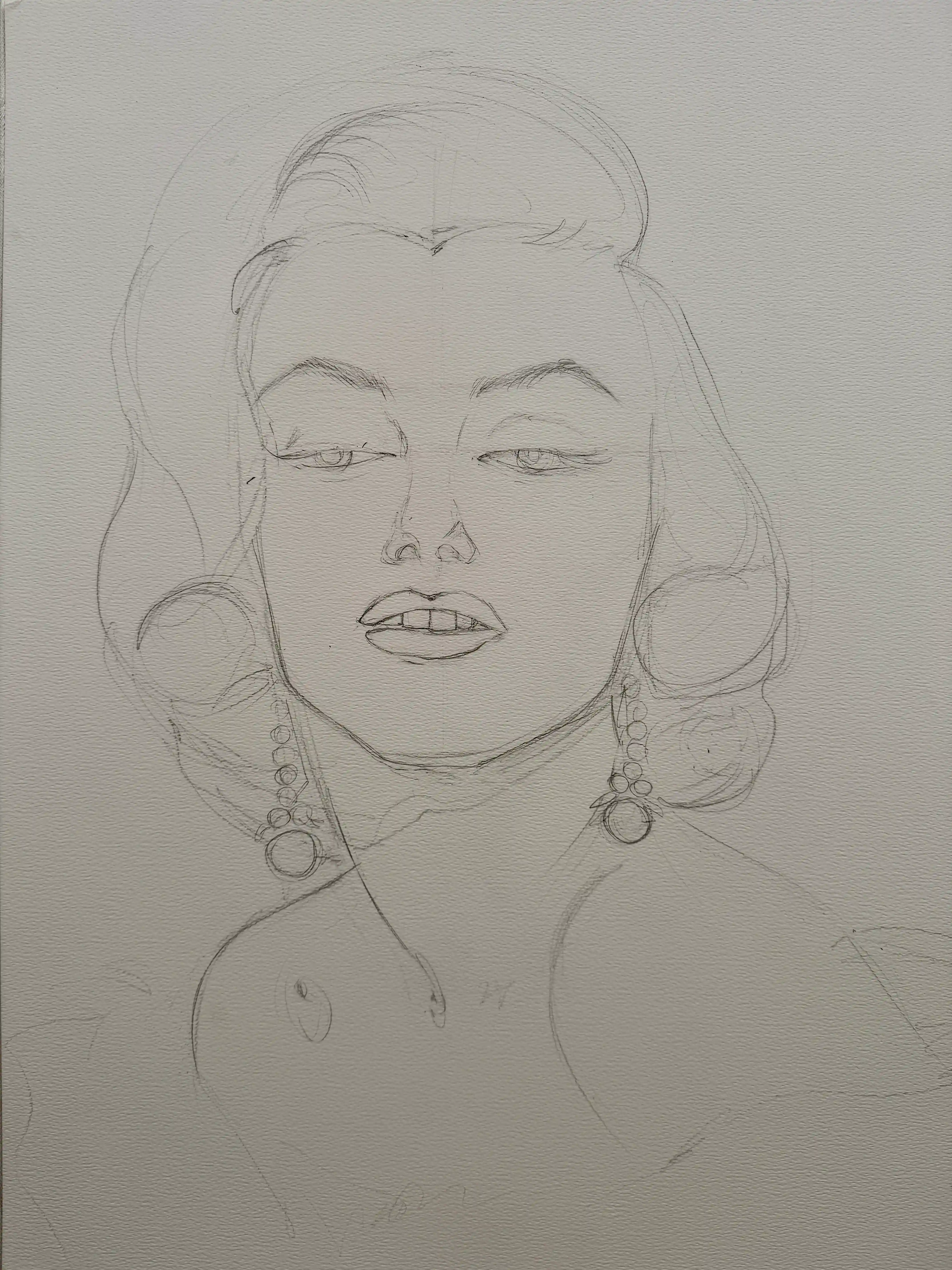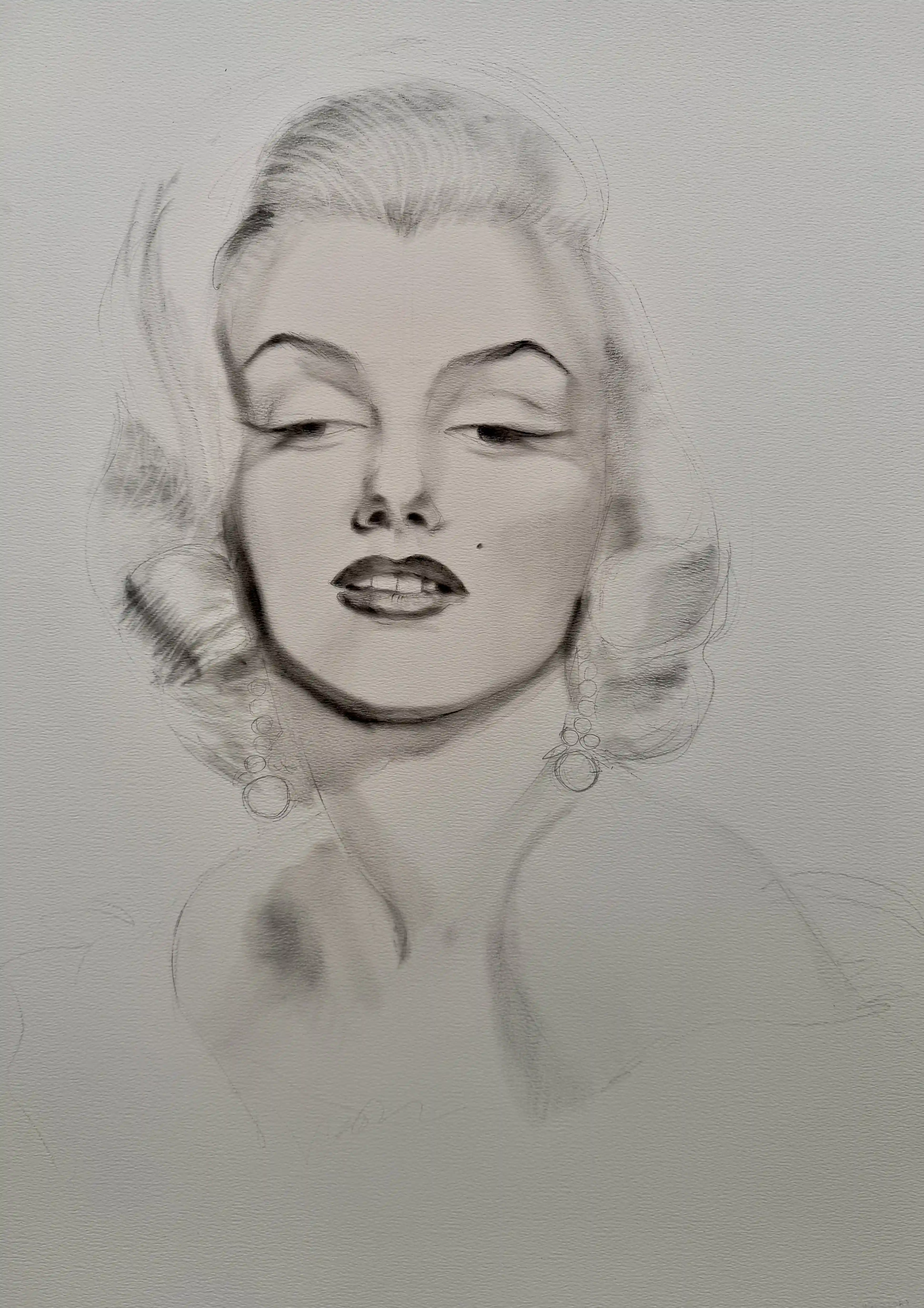 Далее у вас будет два этапа работы прорисовки, на которых образ Мэрилин уже станет узнаваем.