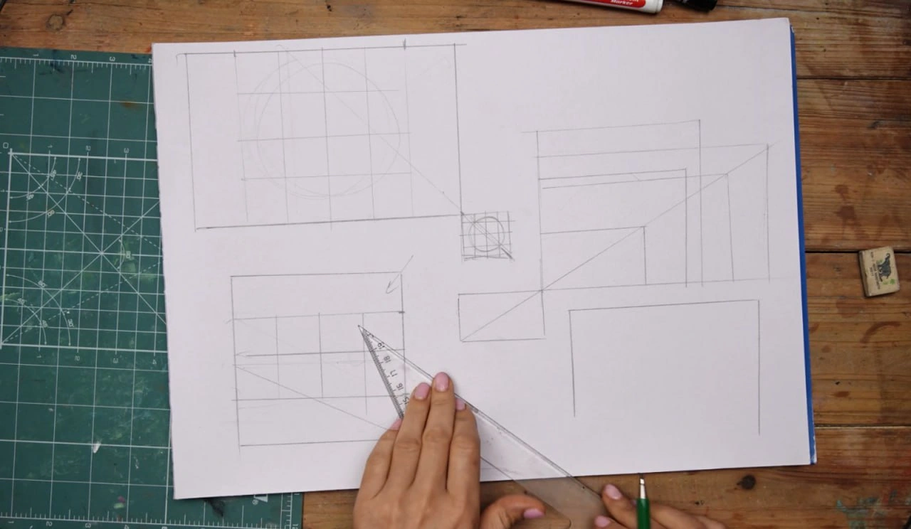 1 слой: Работа с имприматурой и рисунком. Научитесь создавать городской пейзаж в линейной перспективе.
