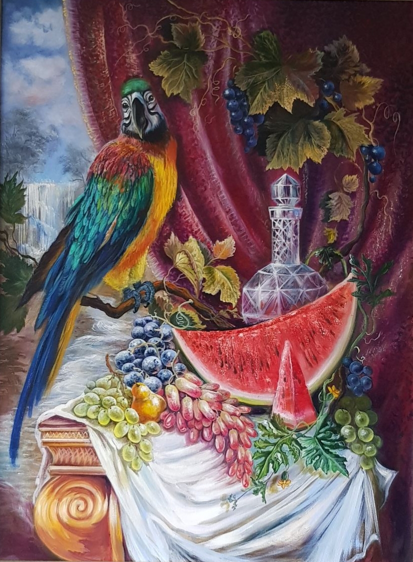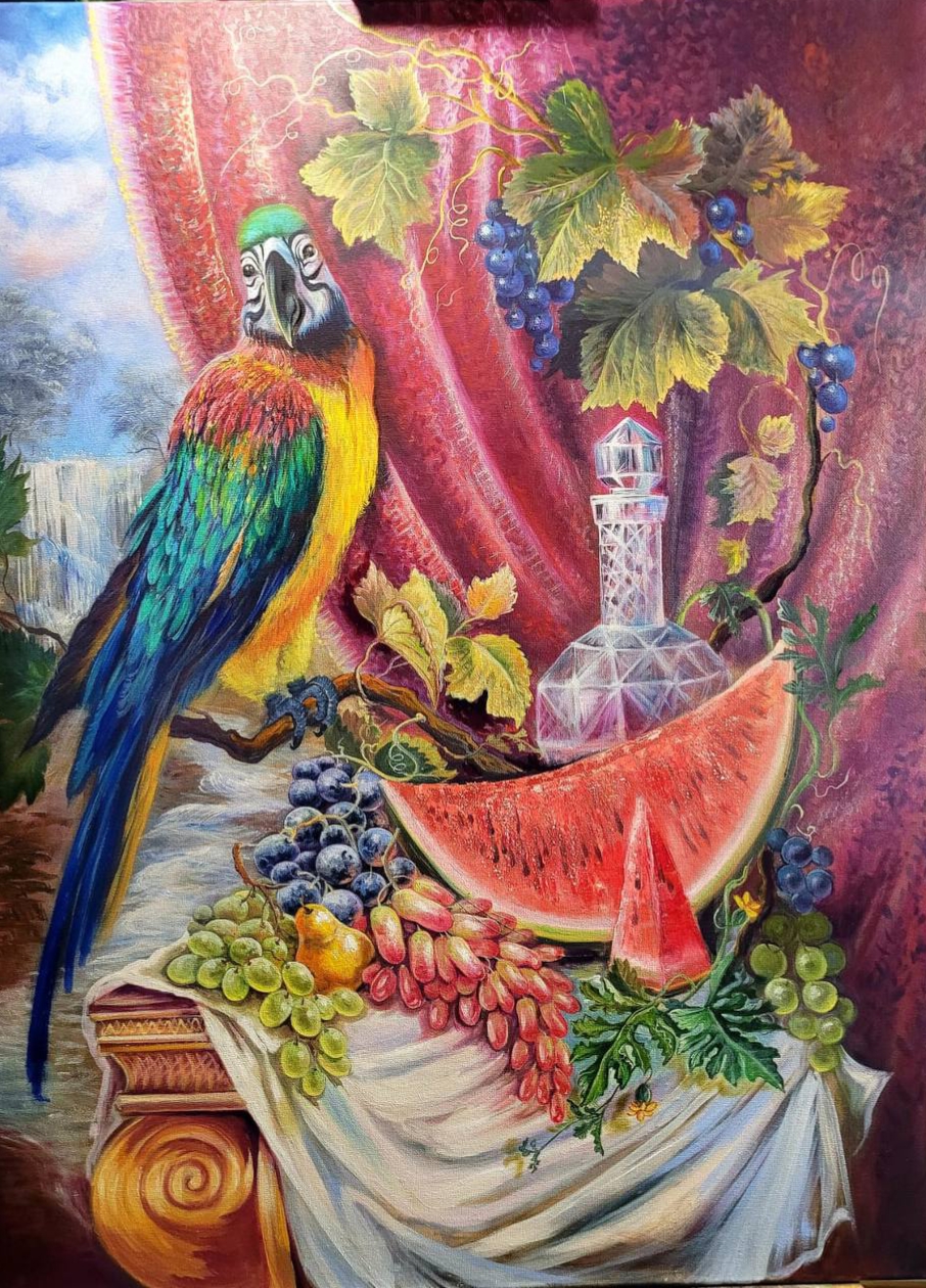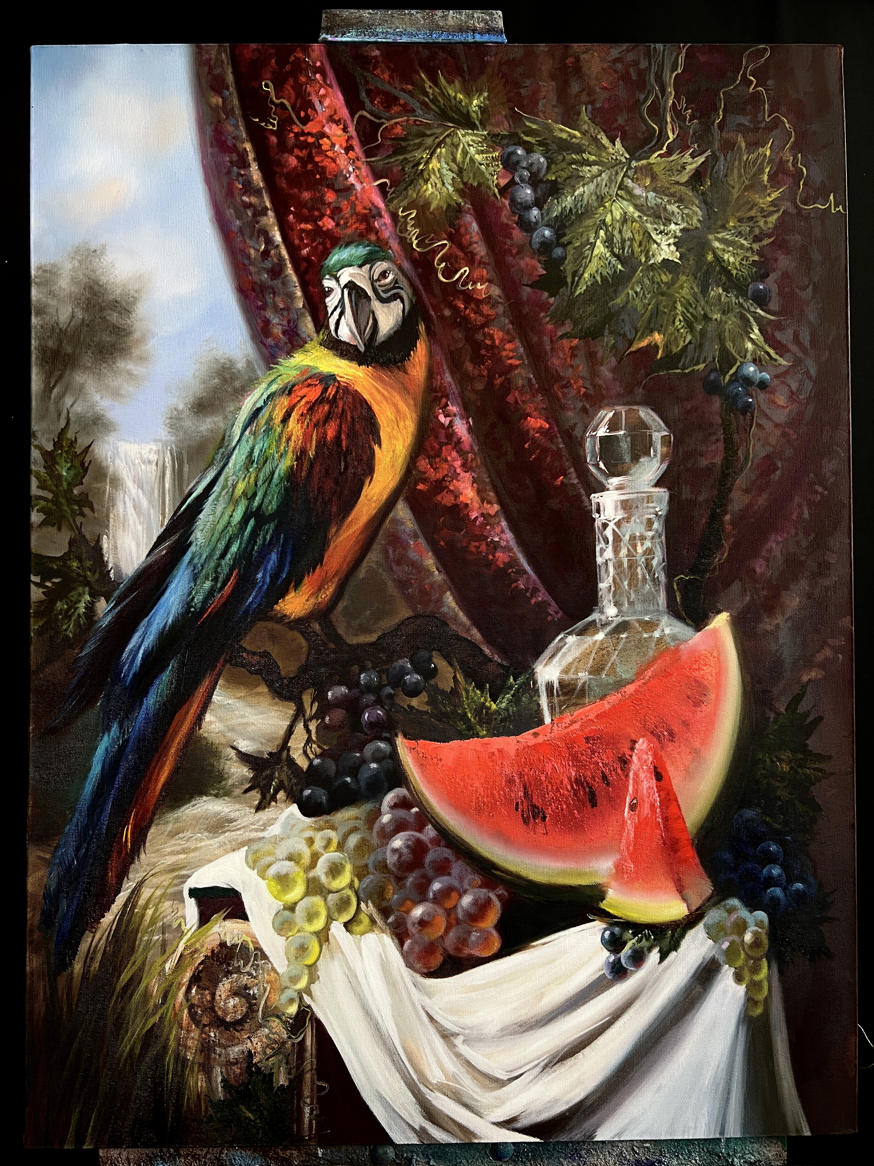 Чудесный мастер-класс! При кажущейся сложности сюжета картина писалась легко, с нетерпением ждала просушки слоев, чтобы продолжить работу. Особенно с интересом изображала орнамент на бумаге, обнаружила и воина в доспехах, и дракона, возможно гербовая бумага, изображенная в сюжете, принадлежала аристократу, увлеченному охотой. Так живопись рождает фантазии и удовольствие от работы! Благодарю студию и Ольгу за подаренное счастье творчества!