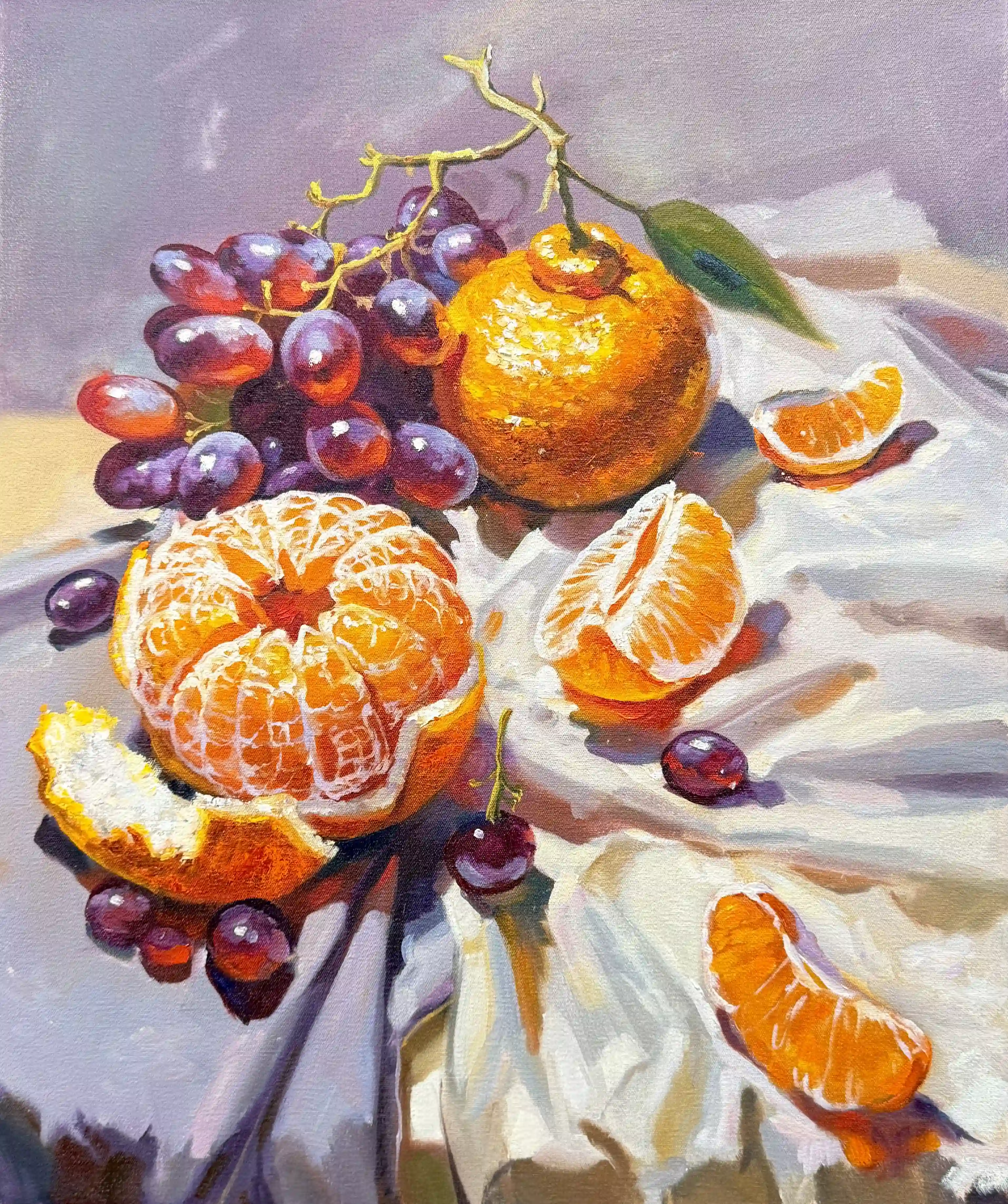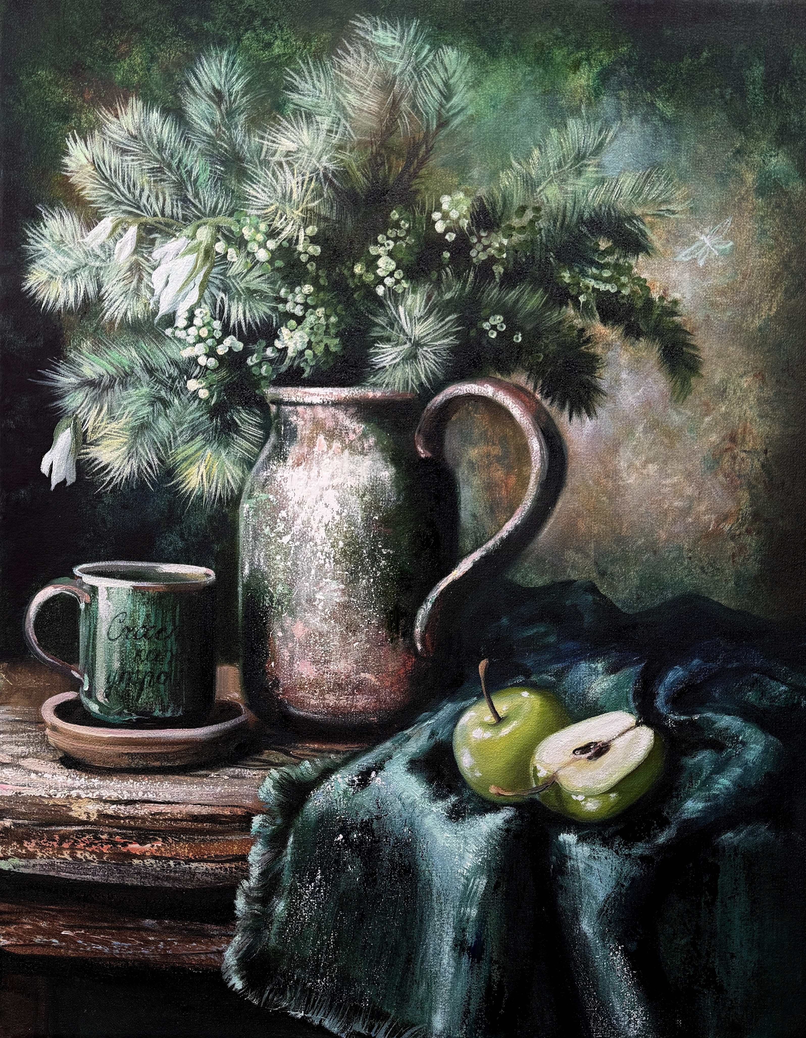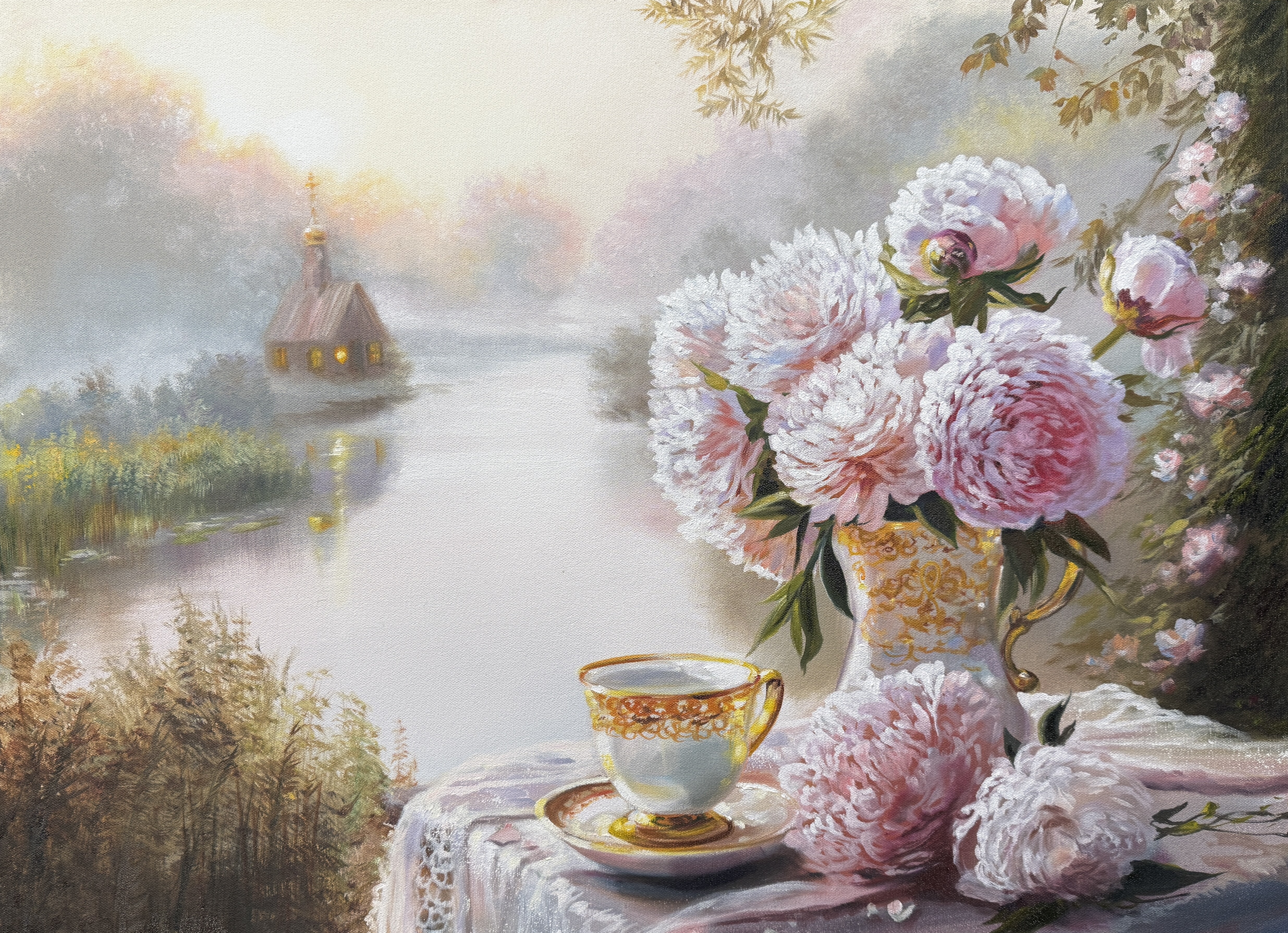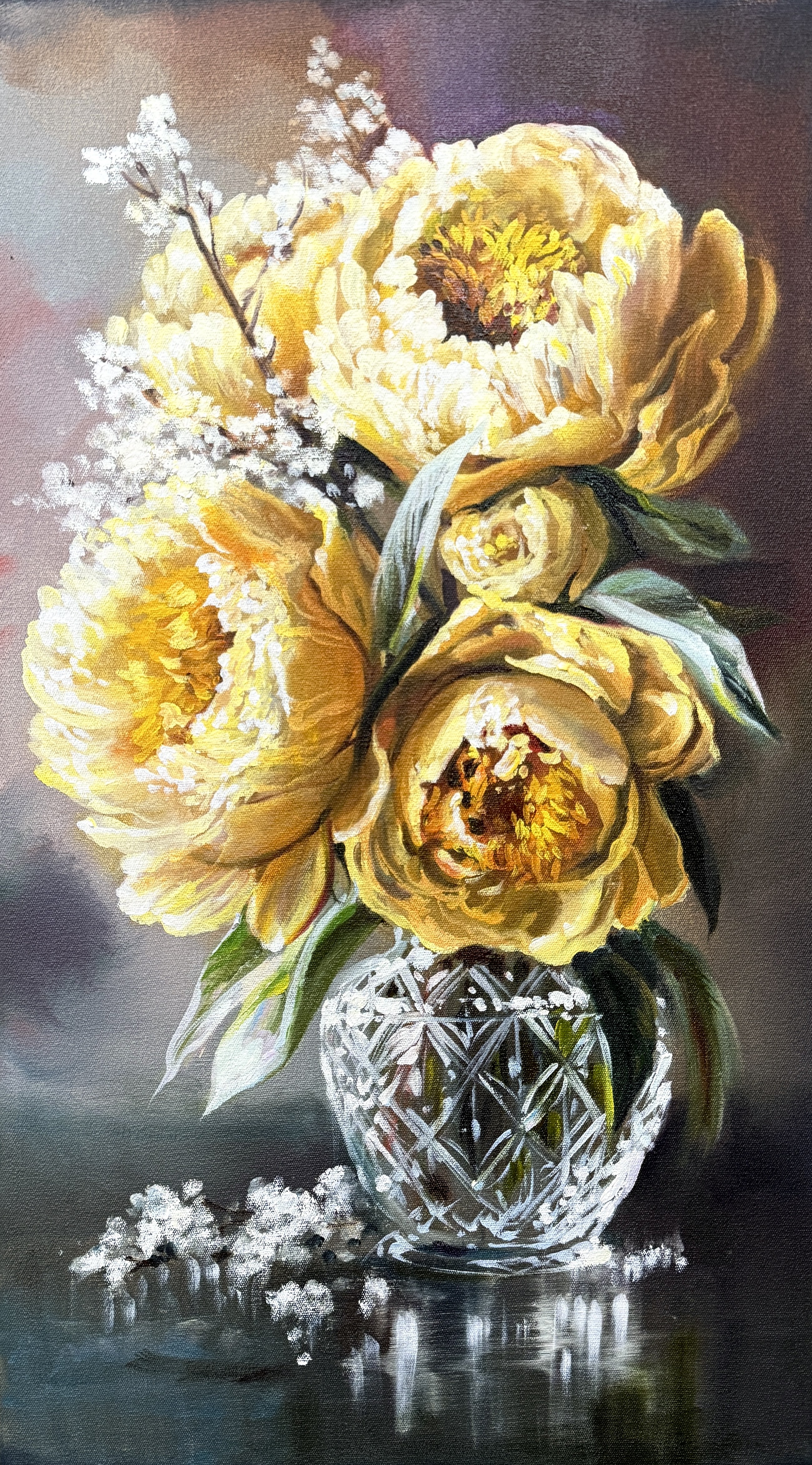 "Жёлтые пионы в хрустальной вазе" 40х70