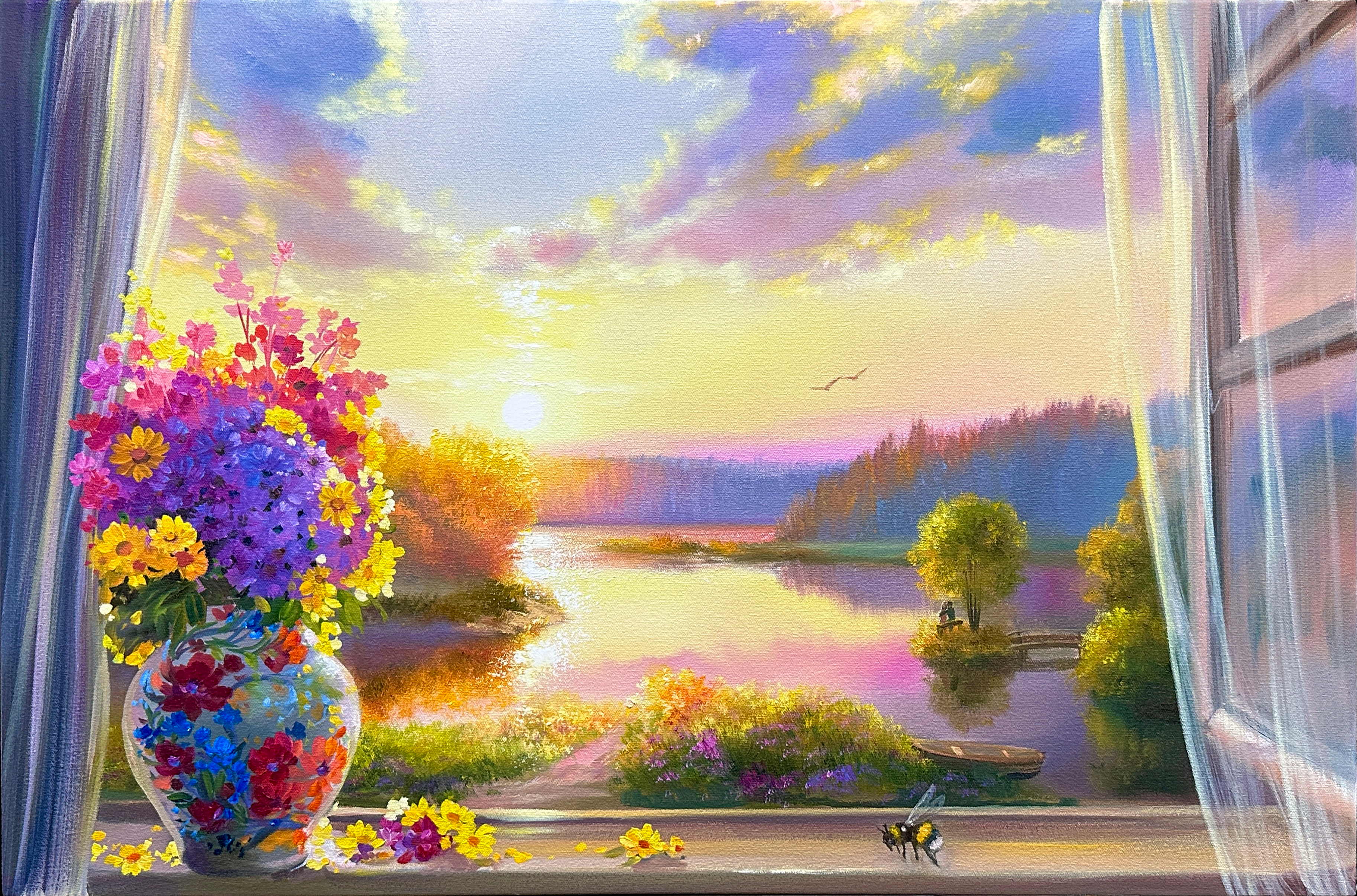 "Летний пейзаж с рекой" 50х70