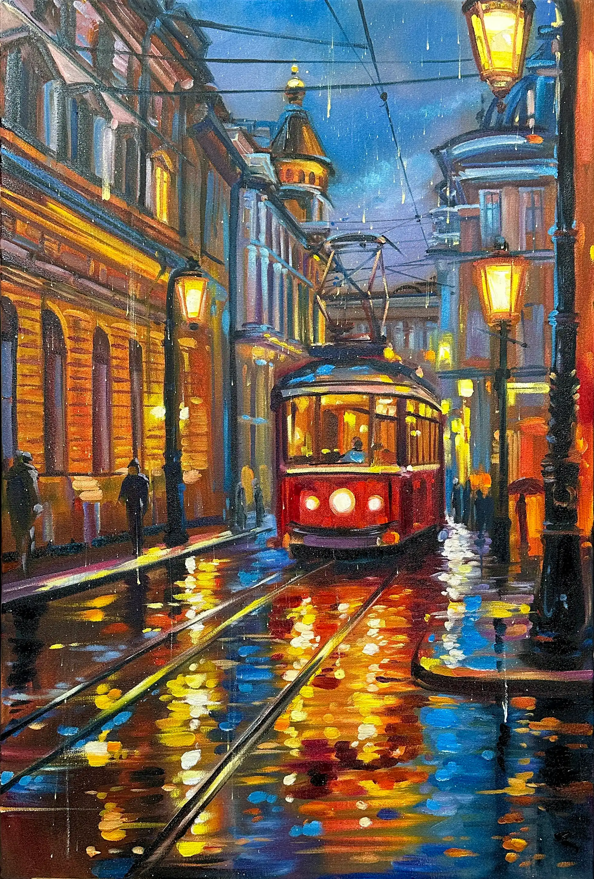 "Вечерний трамвай под дождём" 90х60