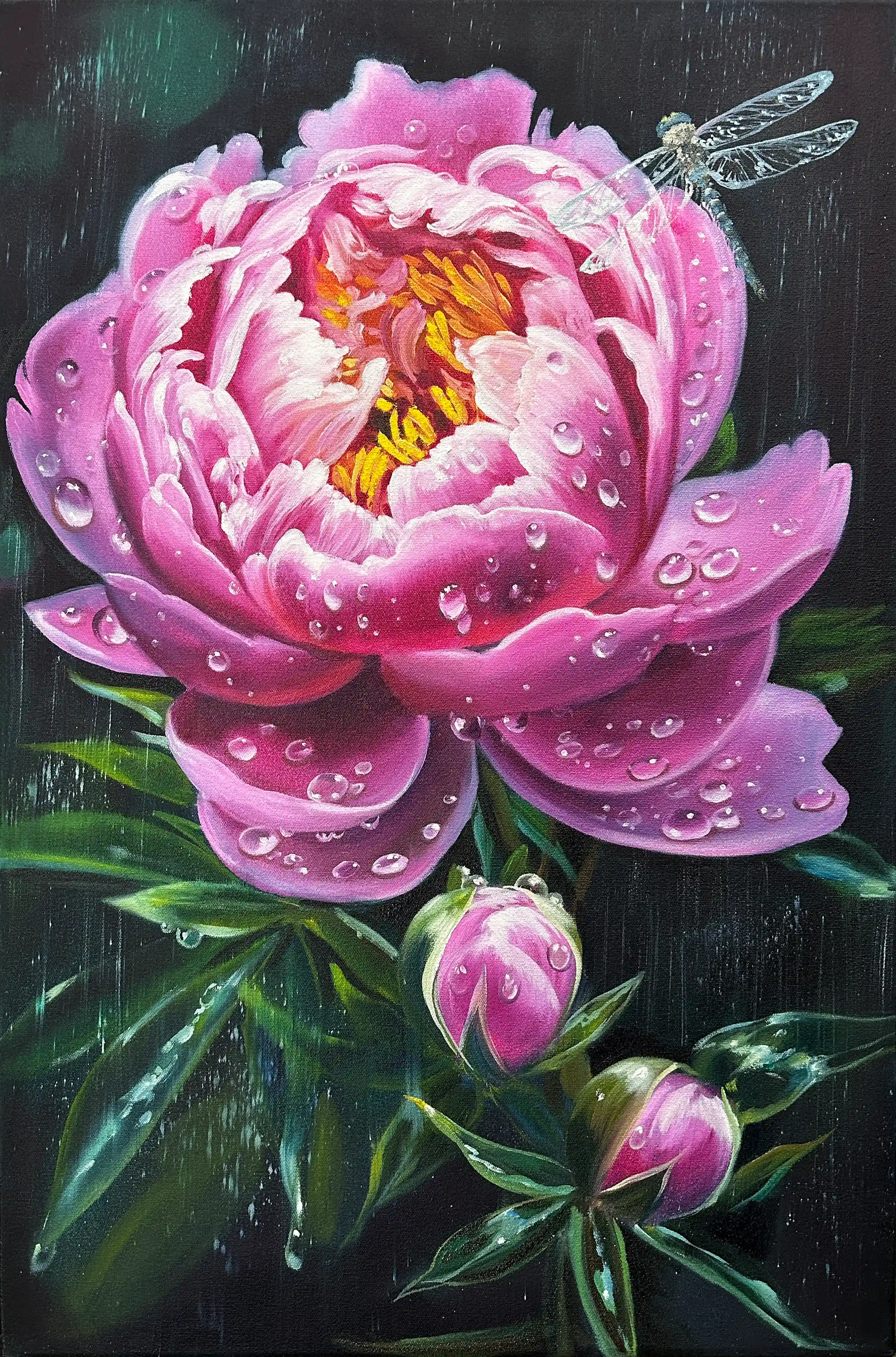 "Пионы под дождём" 40х80