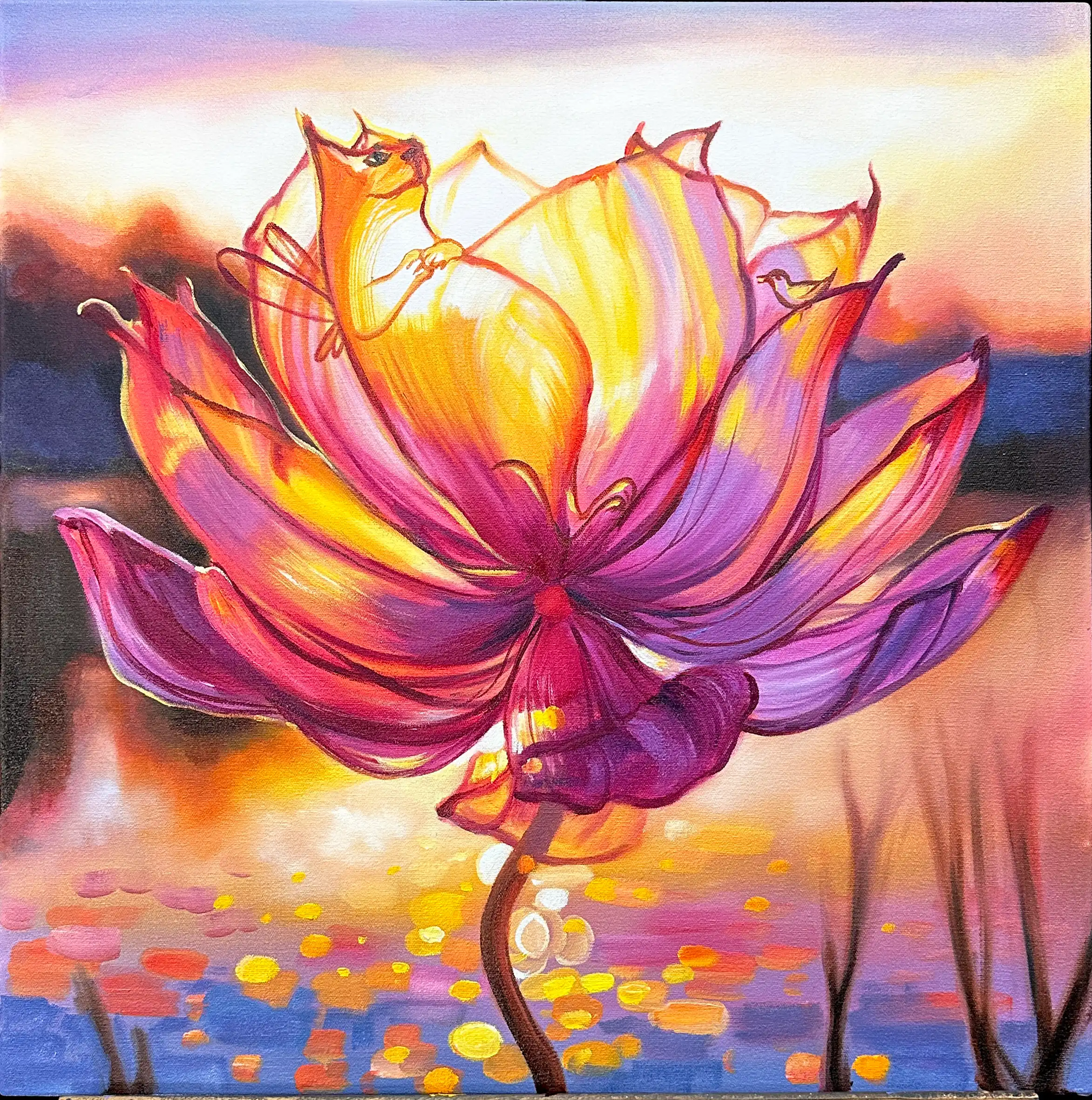 "Рассвет у пруда" 60х60