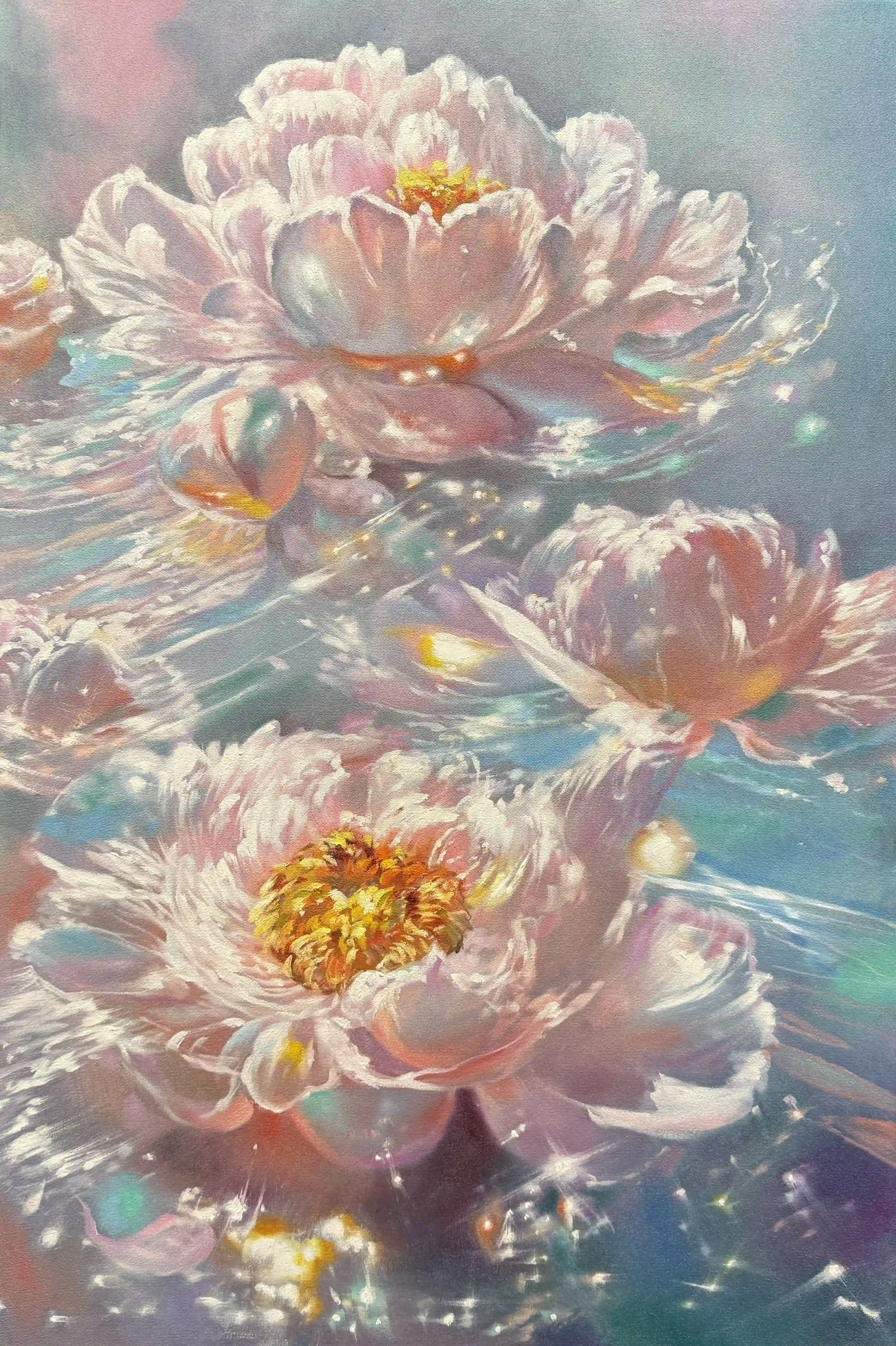 "Натюрморт с белыми розами в стеклянной вазе" 40х50
