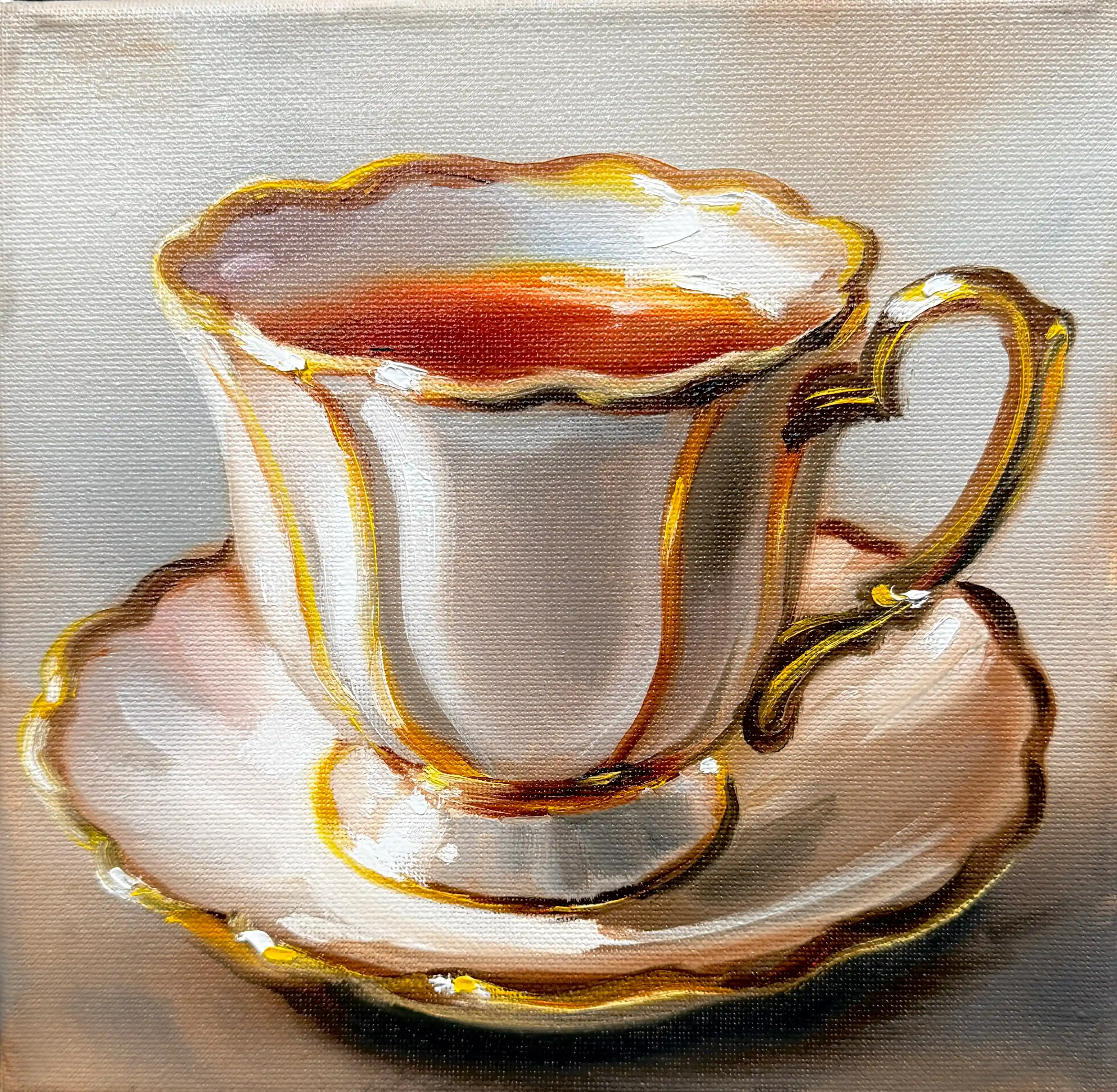 Этюд. Как нарисовать чашку. Научитесь работать с объемами и рисовать золото.