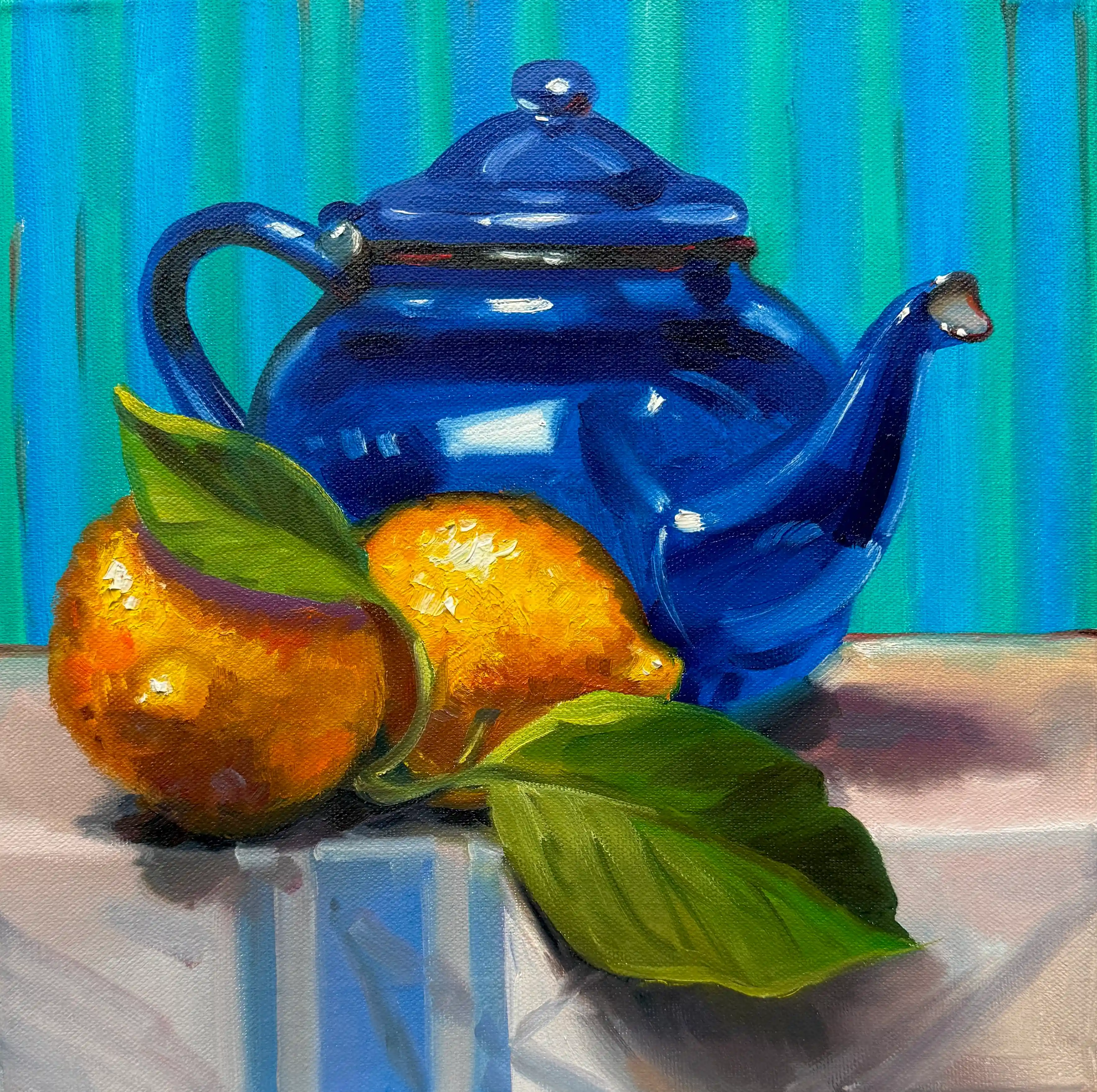Этюд. Пишем синий чайник с лимоном. Научитесь делать построение и размещать правильно предметы и пропорции.